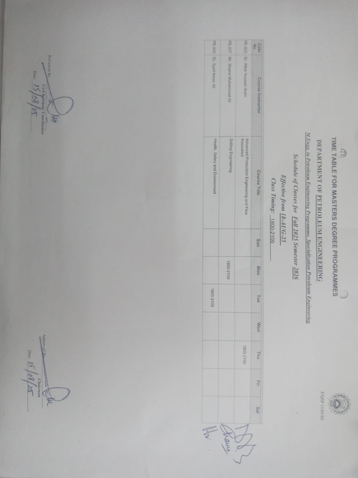 FE TIME TABLE